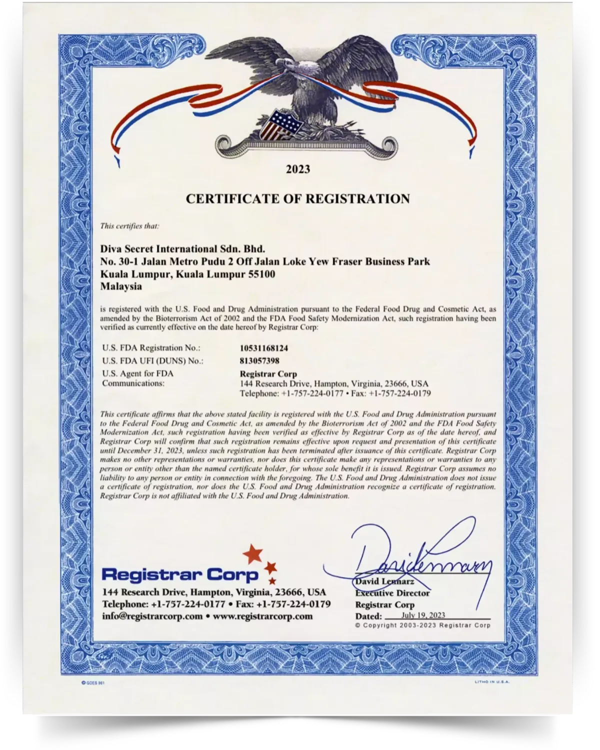 𝗗𝗜𝗩𝗔 𝗦𝗖 is proudly manufactured in Malaysia and distributed worldwide by Diva Secret International, a Malaysian company located in Kuala Lumpur.